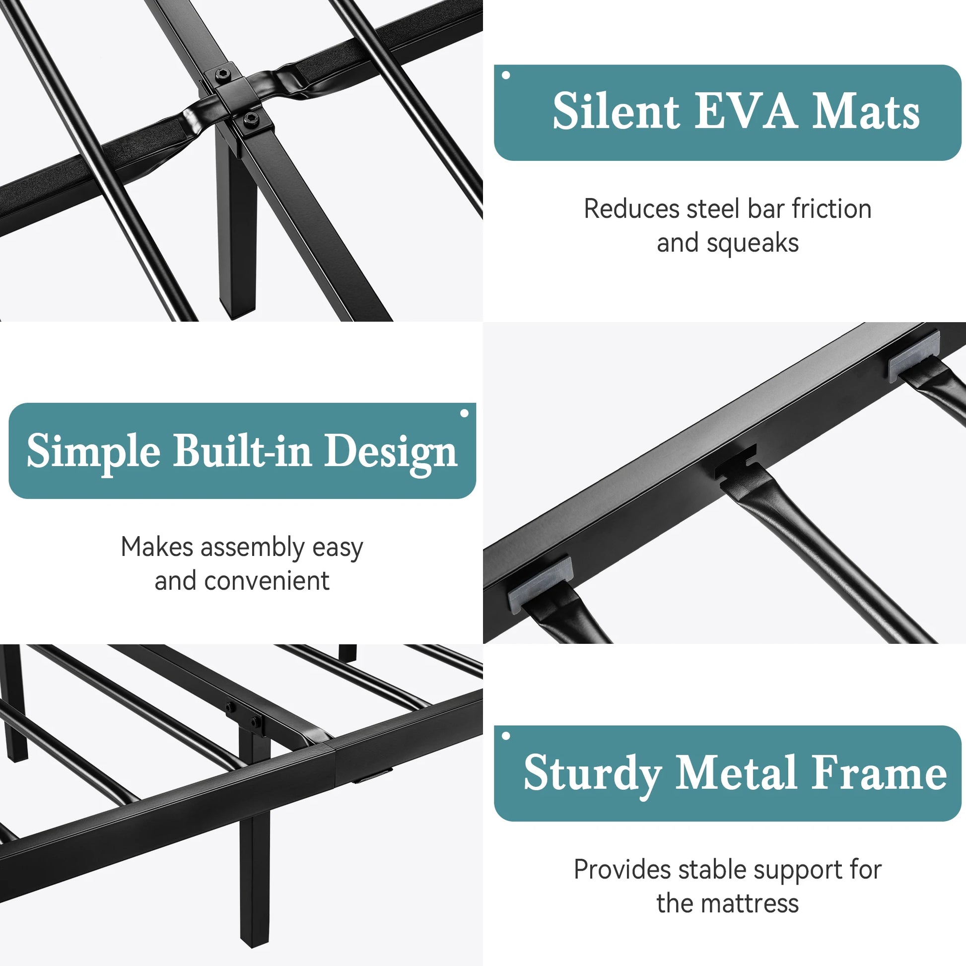 STURDY AND DURABLE: Made from premium-quality steel, this sturdy metal bed frame eliminates the need for a box spring. Simply place your mattress directly on top for a worry-free and comfortable night's sleep
